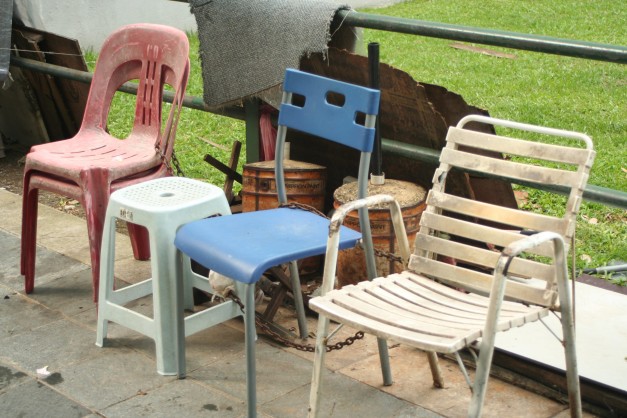 I was just walking through the streets of Singapore, trying to get a feel for the city. There were tall skyscrapers and colorful buildings, a river and restaurants. Then I suddenly see these chairs standing in a row. Upon closing inspection they are chained to the fence. The ordinary became…